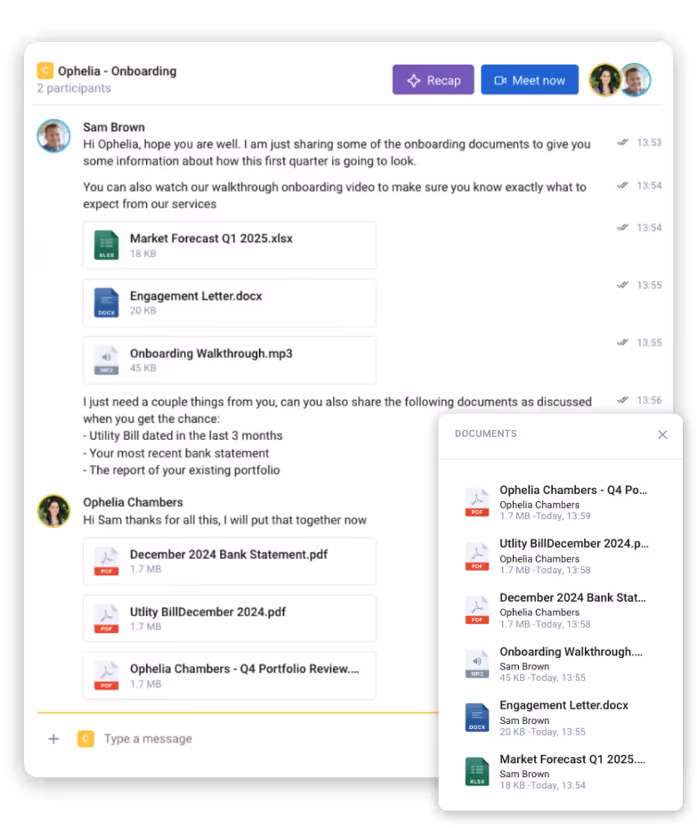 Chat, share files, schedule meetings, and get documents signed. All in your own encrypted and compliant platform - now with built in AI.