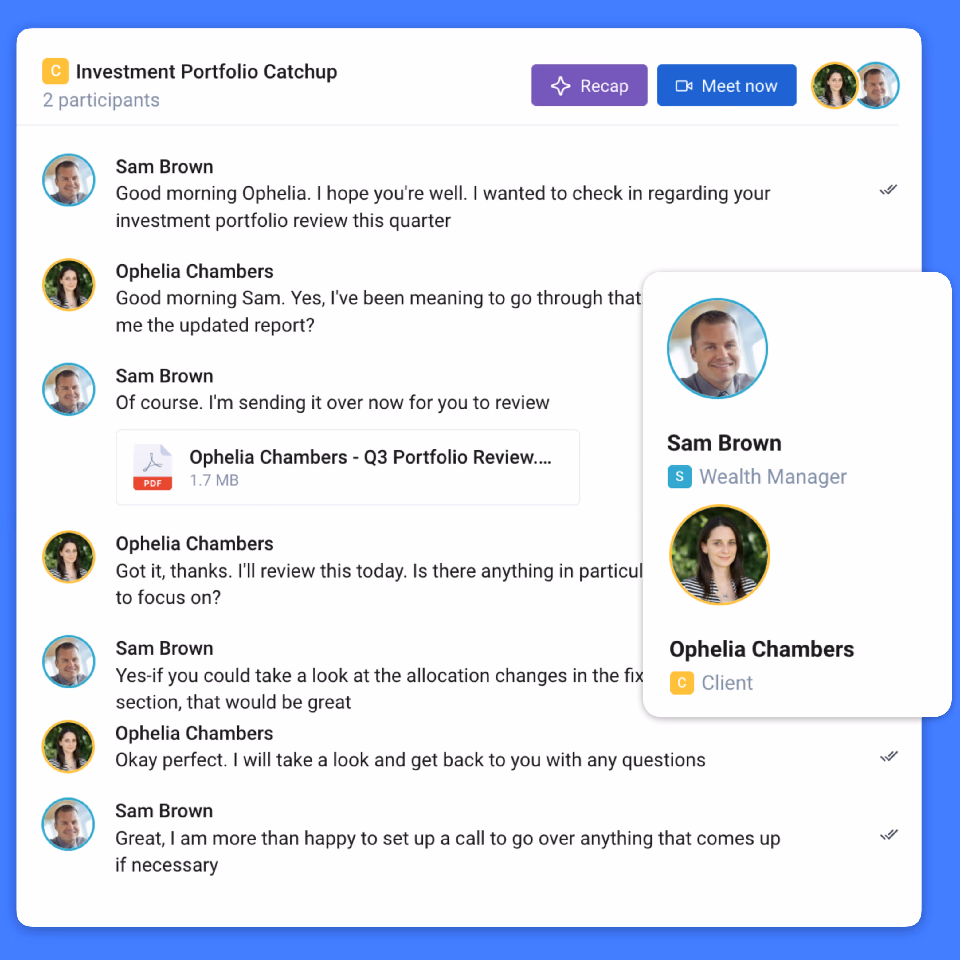 Replace tools like DocuSign, Calendly, and Zoom with built-in e-signatures, scheduling, and video meetings. On average, businesses save $200 per staff member per month — and hours each day — by using Qwil to streamline their communication.