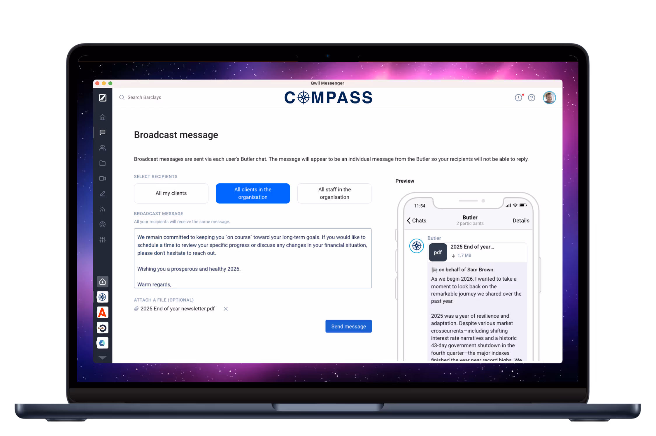 Reach your entire client base instantly, so every contact receives company updates.