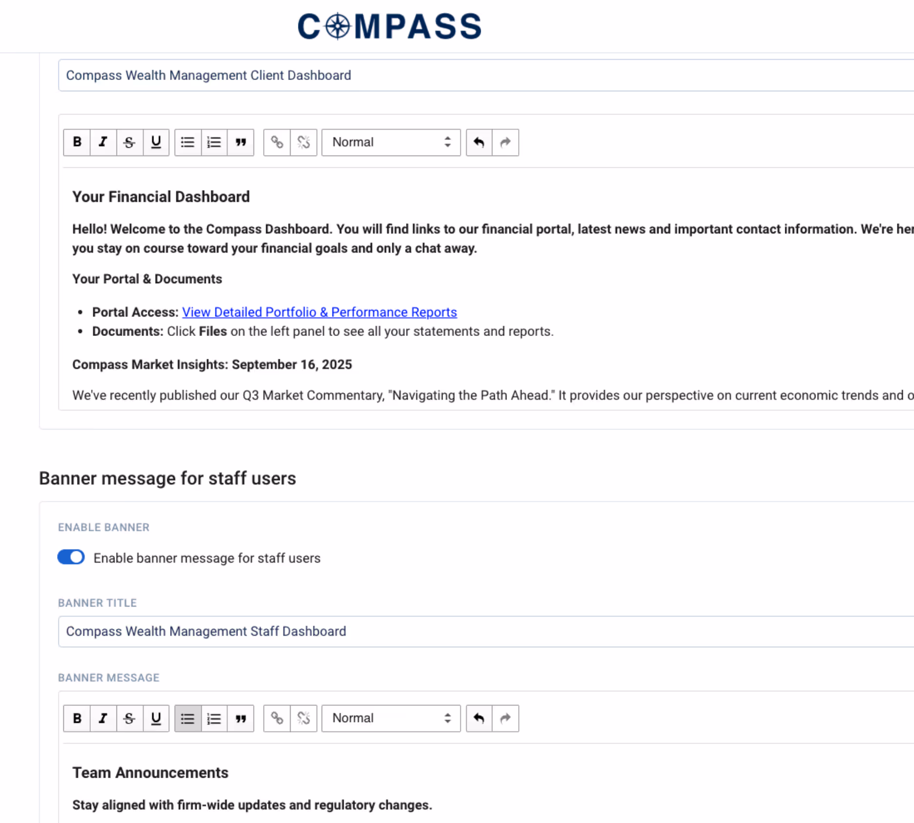 Deliver role-specific dashboards tailored to the distinct needs of staff and clients.