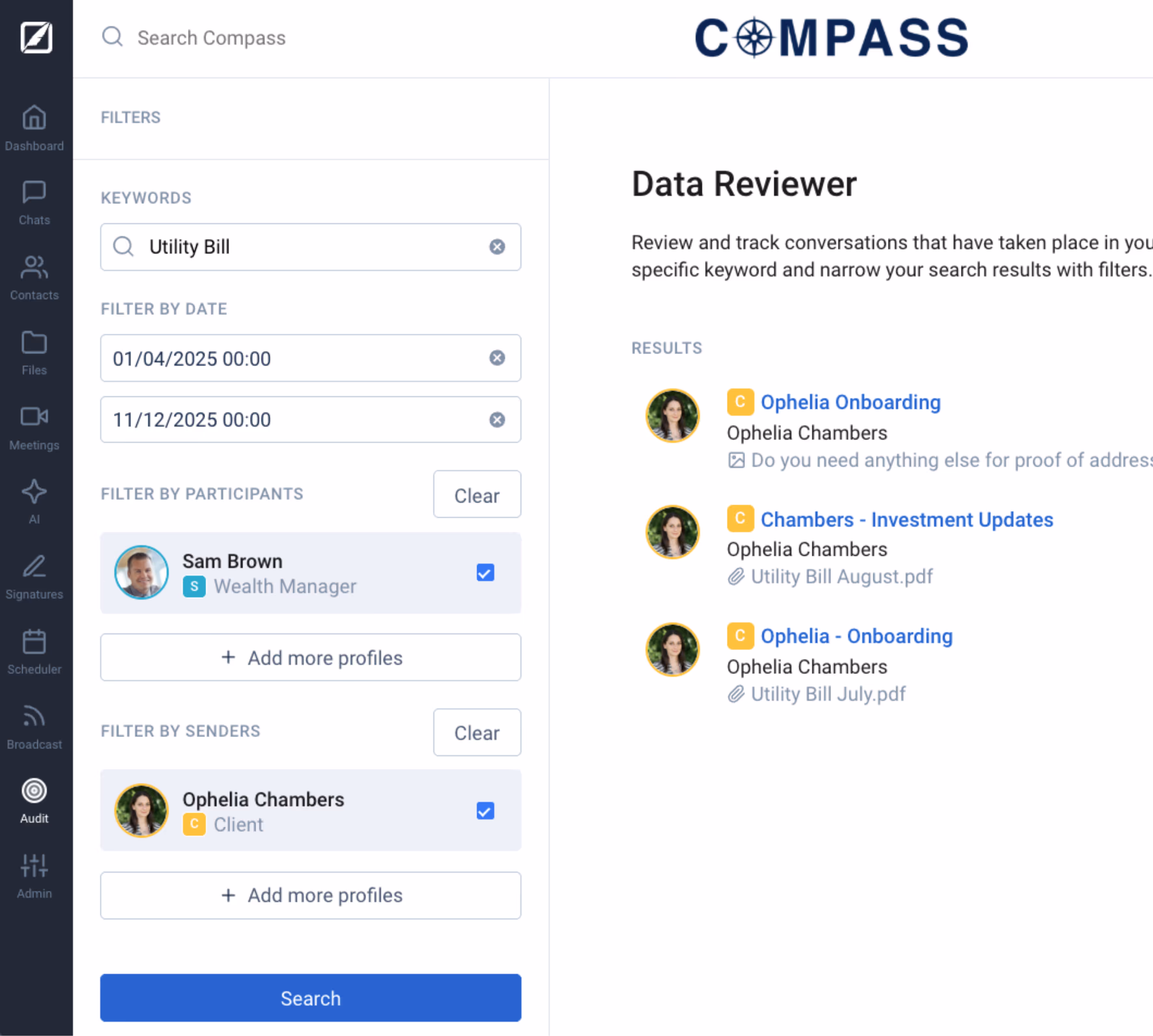 Qwil Messenger handles all the security and compliance for you. Data Reviewer maintains auditable records of every chat, document and signature sent.